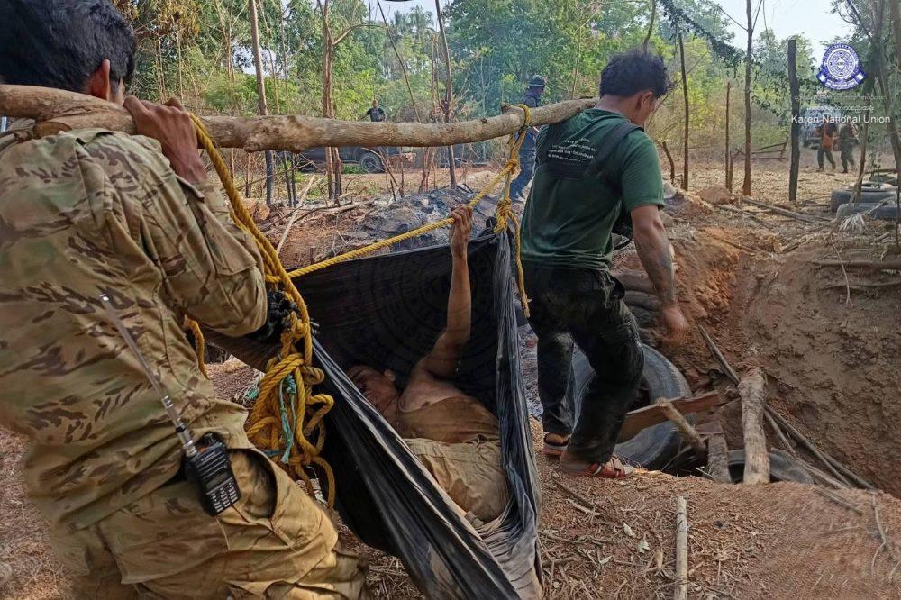 ဘီးလင်းမြို့နယ်၊ လေးကေတပ်စခန်း သိမ်းပိုက်မှုအတွင်း ဒဏ်ရာရရှိသော မြန်မာစစ်တပ်ဘက်မှ စစ်သားကို KNLA တပ်များက ကယ်ထုတ်ခဲ့