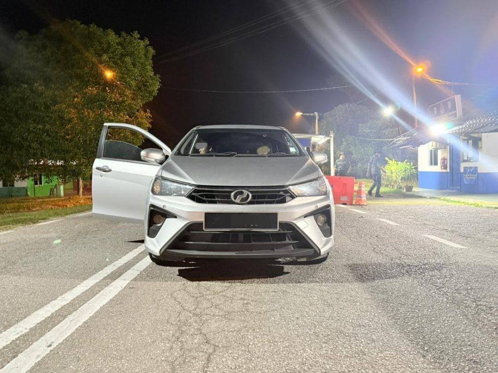 ရမ်တောပန်ဂျန်း (Rantau Panjang) ဘက်မှ မောင်းနှင်လာသော မသင်္ကာဖွယ် Perodua Bezza ကားတစ်စီးကို တားဆီးစစ်ဆေးခဲ့ရာ
