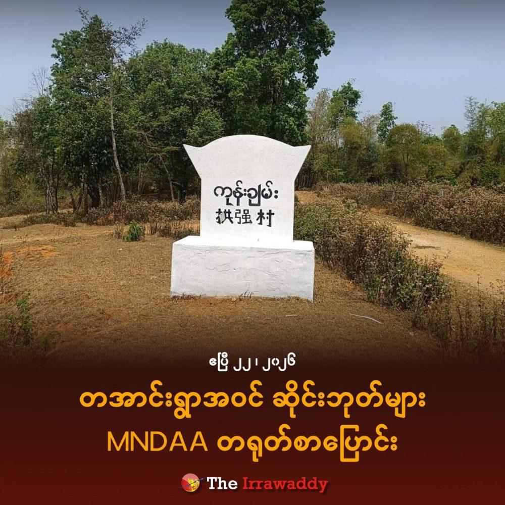 ရှမ်းပြည်နယ်မြောက်ပိုင်း ကွတ်ခိုင်မြို့ကို ပလောင် (တအာင်း) အမျိုးသား လွတ်မြောက်ရေး တပ်မတော် (TNLA) ထံမှ သိမ်းပိုက်ထားသော မြန်မာအမျိုးသား ဒီမိုကရက်တစ် မဟာမိတ်တပ်မတော် (MNDAA) သည် တအာင်းကျေးရွာ ဆိုင်းဘုတ်များအား သင်္ကြန်ကာလအတွင်း၌ တရုတ်စာပြောင်းလဲ ရေးသားခဲ့ကြောင်း ဒေသခံများထံက သိရသည်။