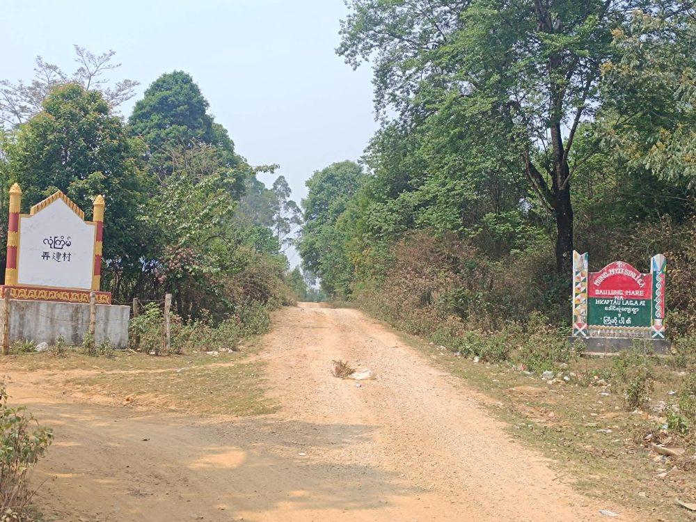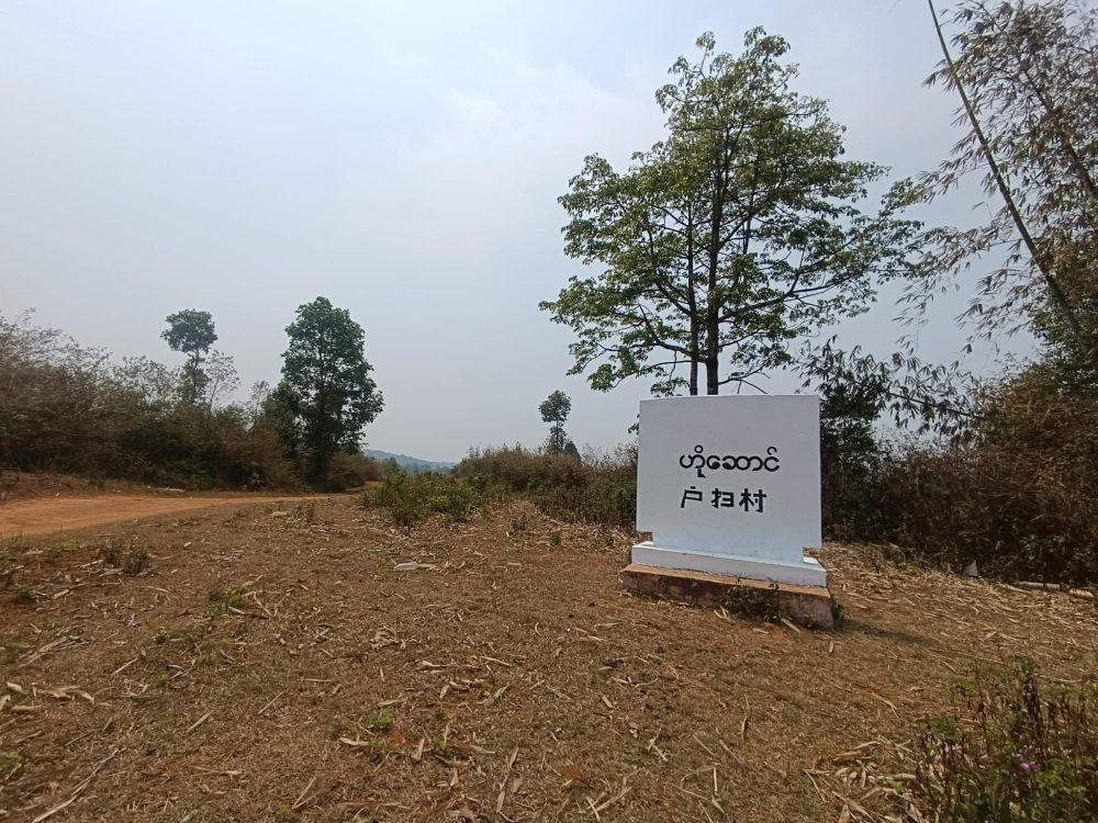 တအာင်းရွာအဝင် ဆိုင်းဘုတ်များ MNDAA တရုတ်စာပြောင်း