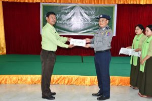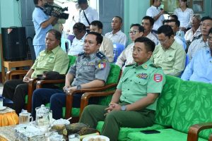 ပုံစာ-ဧရာ၀တီတိုင်း တပ်ဖွဲ့မှူး ရဲမှူးကြီး ကျော်ထွန်း နှင့် ရဲတပ်ဖွဲ့ထိပ်ပိုင်းခေါင်းဆောင်များ။