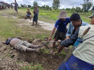 ခင်ဦးနှင့် ရွှေဘိုအစပ် တိုက်ပွဲတွင် သေဆုံးသွားသော တပ်မ ၇၇ မှ တပ်ရင်းမှူး ဒုဗိုလ်မှူးကြီးနှင့် ဗိုလ်ကြီး မင်းထက်တို့၏ အလောင်းများ အပါအဝင် စစ်သား အလောင်းများကို စစ်တပ်က လာမကောက်၍ PDF များက မြေမြှုပ်ပေးရ