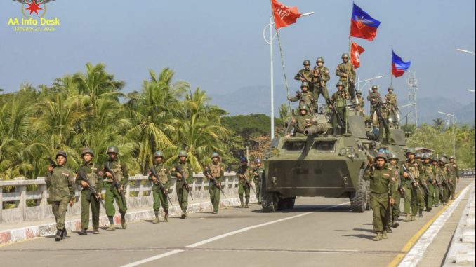 AAဟာ ၂၀၂၃ နိုဝင်ဘာ ၁၃ရက်က စတင်တဲ့ ၁၀၂၇ စစ်ဆင်ရေးနဲ့အတူ ရခိုင်ပြည်နယ်မှာ စစ်တွေ၊ မာန်အောင်နဲ့ ကျောက်ဖြူမြို့ကလွဲလို့ ကျန်မြို့တွေအပြင် ချင်းပြည်နယ် ပလက်ဝဒေသကို သိမ်းယူထားပါတယ်။ ကျန်မြို့သိမ်းတိုက်ပွဲတွေကိုလည်း စစ်ရေးရည်မှန်းချက်အတိုင်း ဆက်လက်တိုက်ခိုက်သိမ်းပိုက်သွားမယ်လို့ AAက ထုတ်ပြန်ထားပါတယ်။
