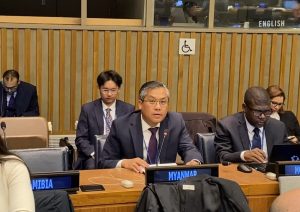 မြန်မာနိုင်ငံမှ တိုင်းရင်းသားလူနည်းစုများအပါအဝင် အရပ်သားပြည်သူများအပေါ် ပစ်မှတ်ထားတိုက်ခိုက်နေ၍ မြန်မာစစ်အုပ်စုထံသို့ လက်နက်ရောင်း ချမှု နိုင်ငံတကာက ပိတ်ပင်ပေးရန် ကုလသမဂ္ဂဆိုင်ရာ မြန်မာအမြဲတမ်းကိုယ်စားလှယ် သံအမတ်ကြီးဦးကျော်မိုးထွန်းက ထပ်မံတောင်းဆိုလိုက်သည်။
